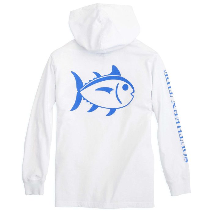 Kids Skipjack Long Sleeve Hoodie T-Shirt in Classic White by Southern Tide