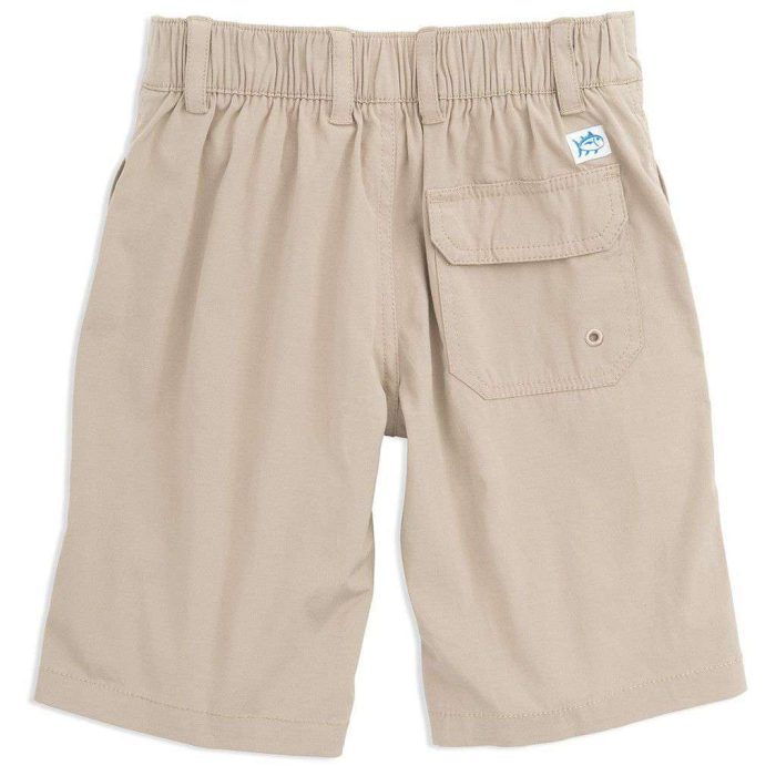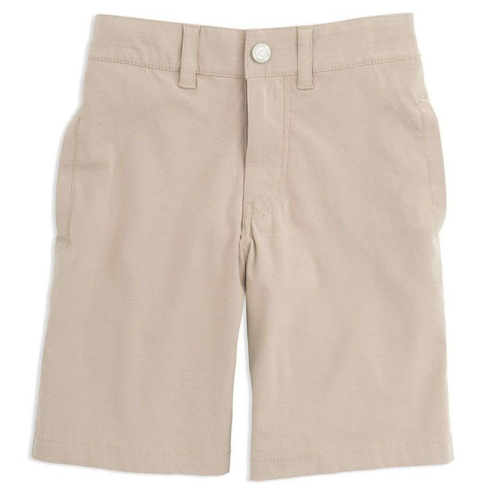 Youth Tide to Trail Performance Shorts in Stone by Southern Tide