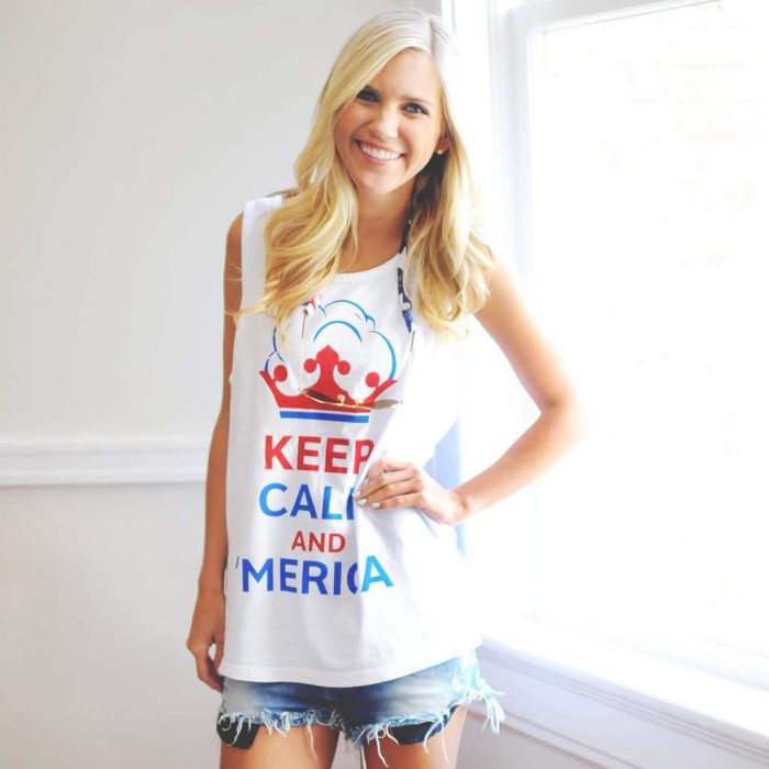 Unisex Keep Calm and ‘Merica Tank Top in White by Lauren James
