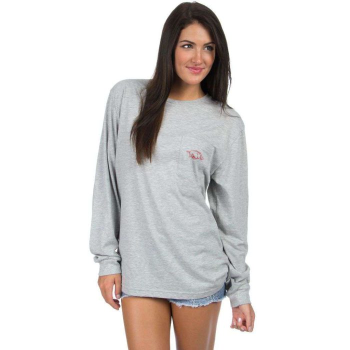 University of Arkansas Long Sleeve Stadium Tee in Heather Grey by Lauren James