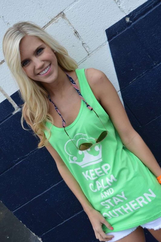 Unisex Keep Calm and Stay Southern Tank Top in Neon Blue by Lauren James