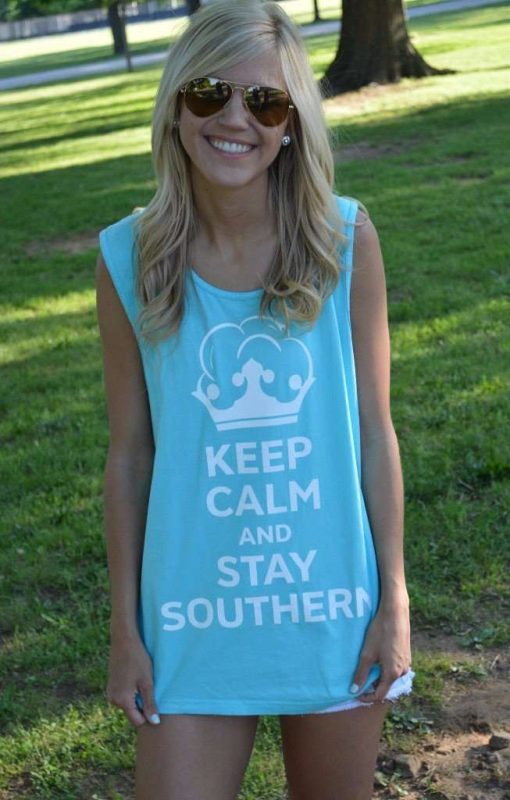 Unisex Keep Calm and Stay Southern Tank Top in Periwinkle by Lauren James