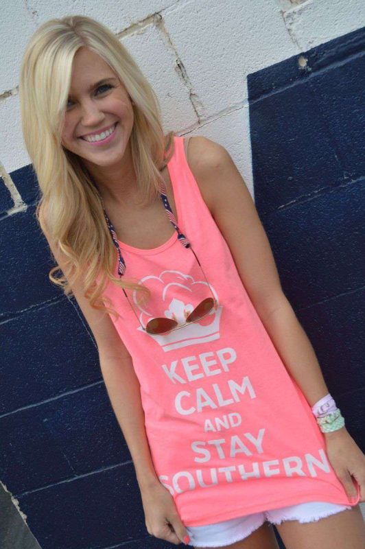 Unisex Keep Calm and Stay Southern Tank Top in Neon Pink by Lauren James
