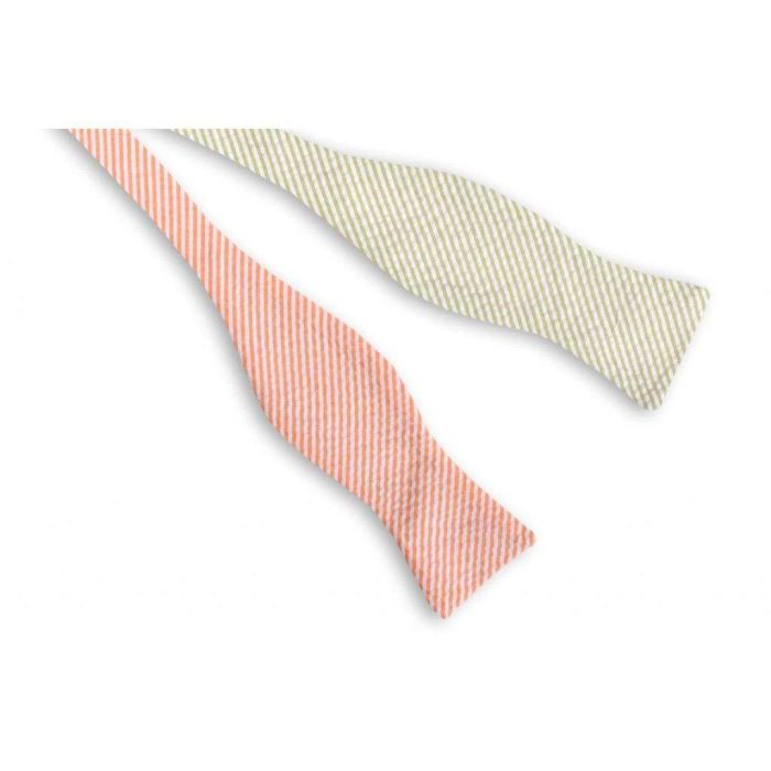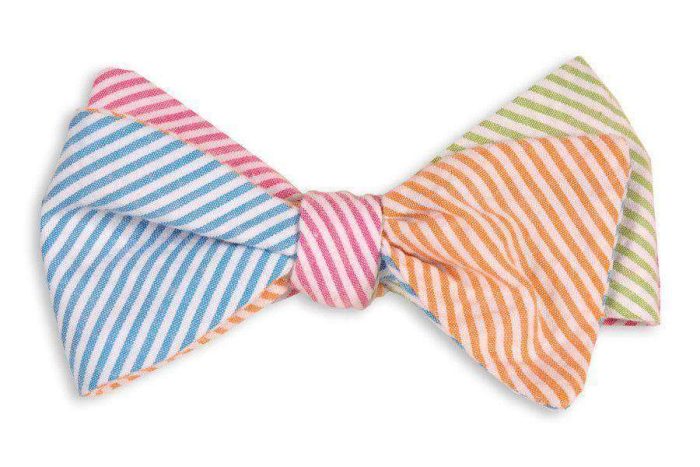 Boater Seersucker Four Way Bow Tie in Blue, Pink, Green and Orange Seersucker by High Cotton