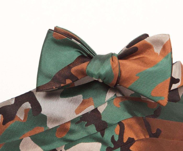 Camo Cummerbund and Bow Set in Green and Brown by Collared Greens