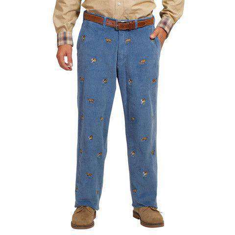 Wide Wale Corduroy Pants in Storm Blue with Bird Dog by Castaway Clothing