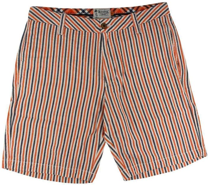 9 Seersucker Walking Shorts in Orange and Navy by Olde School Brand