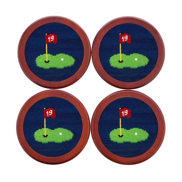 19th Hole Needlepoint Coasters in Classic Navy by Smathers & Branson