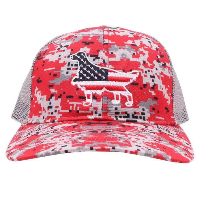 American Flag Hunter Dog Hat in Red Camo by Southern Snap Co.
