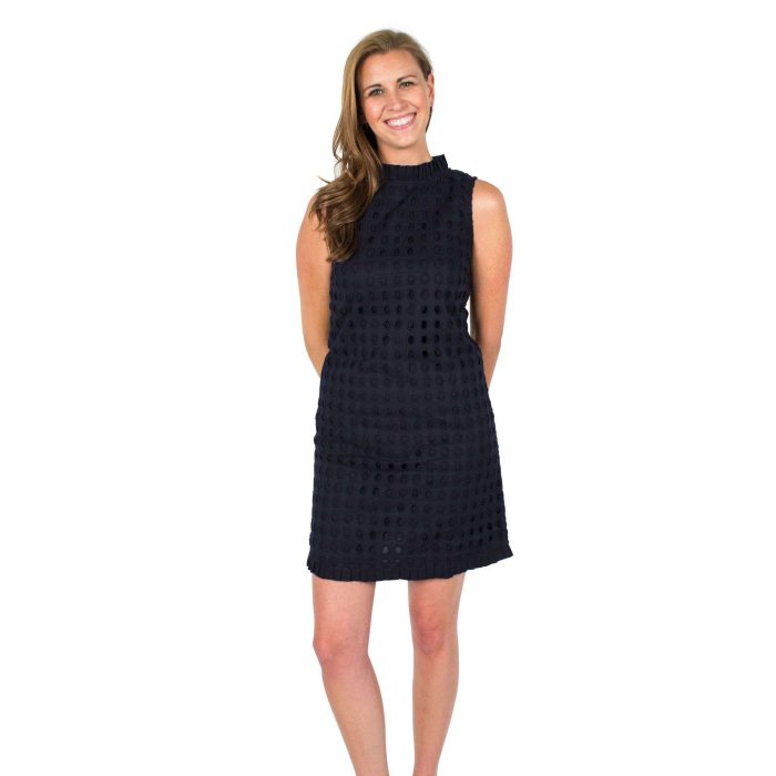 Eyelet Ruffle Dress in Navy by Sail to Sable