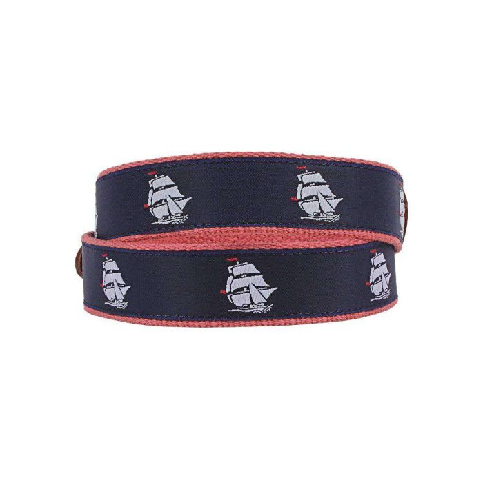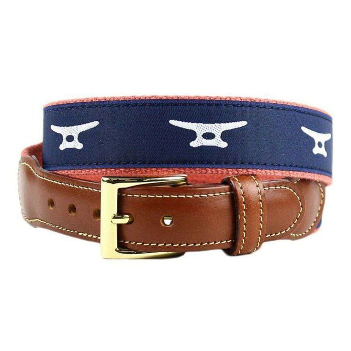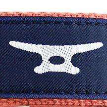 Boat Cleat Leather Tab Belt in Navy on Soft Red Canvas by Country Club Prep