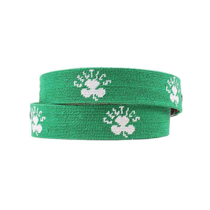 Boston Celtics Needlepoint Belt in Light Emerald by Smathers & Branson