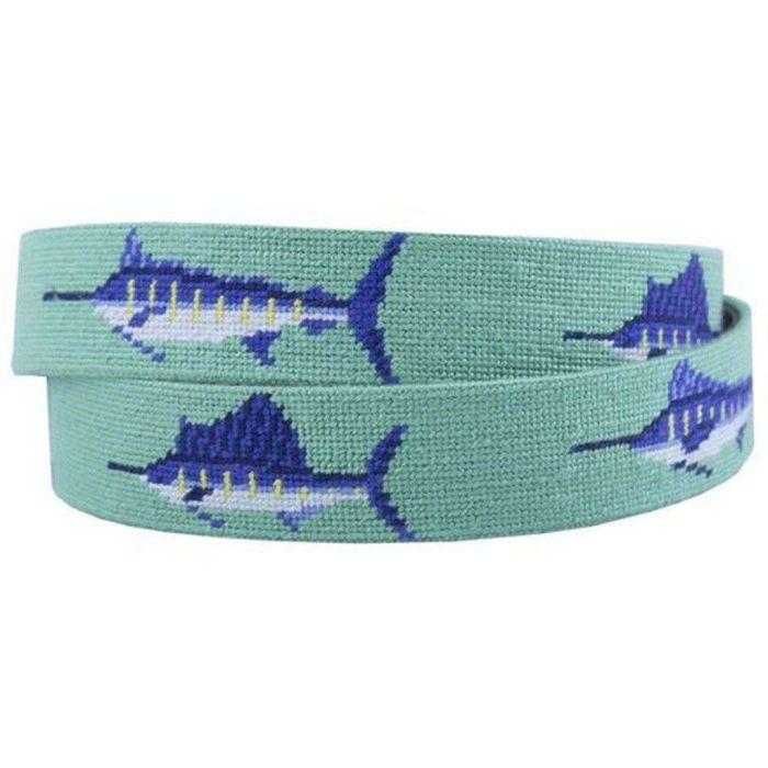 Bill Fish Needlepoint Belt in Mint by Smathers & Branson