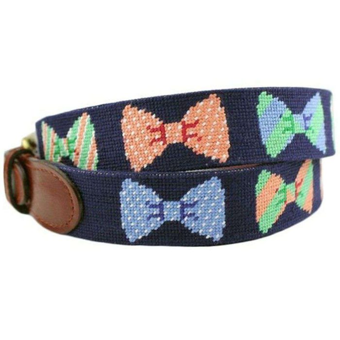 Bow Tie Needlepoint Belt in Navy by Smathers & Branson