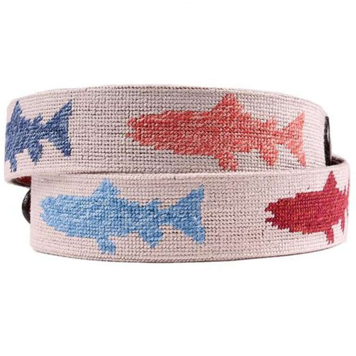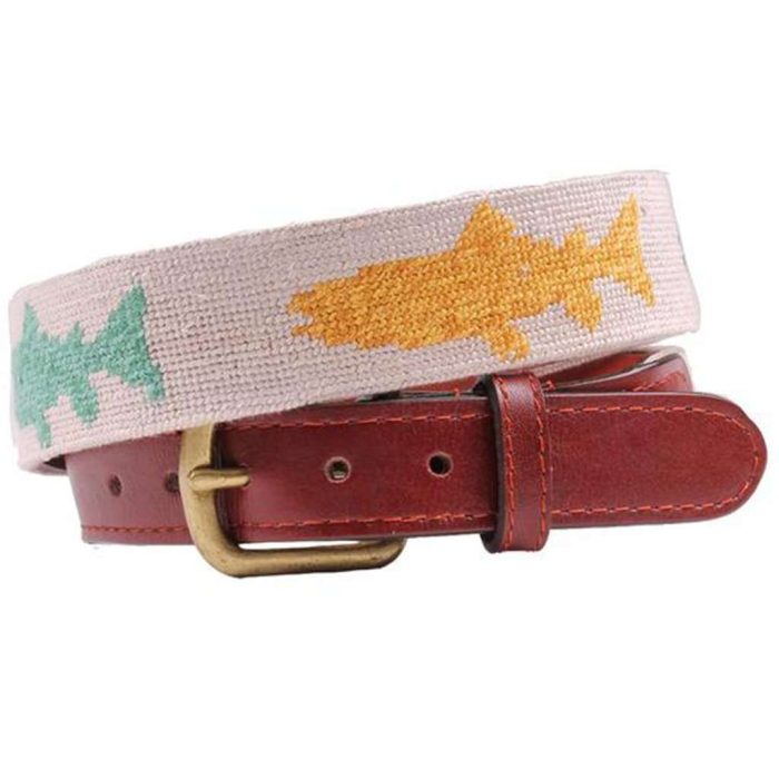 Heathered Rainbow Trout Needlepoint Belt in Khaki by Smathers & Branson