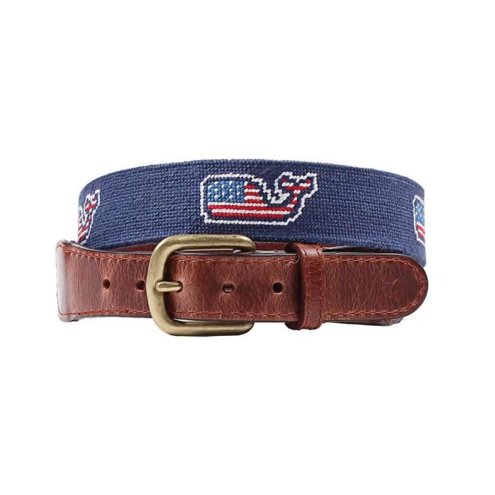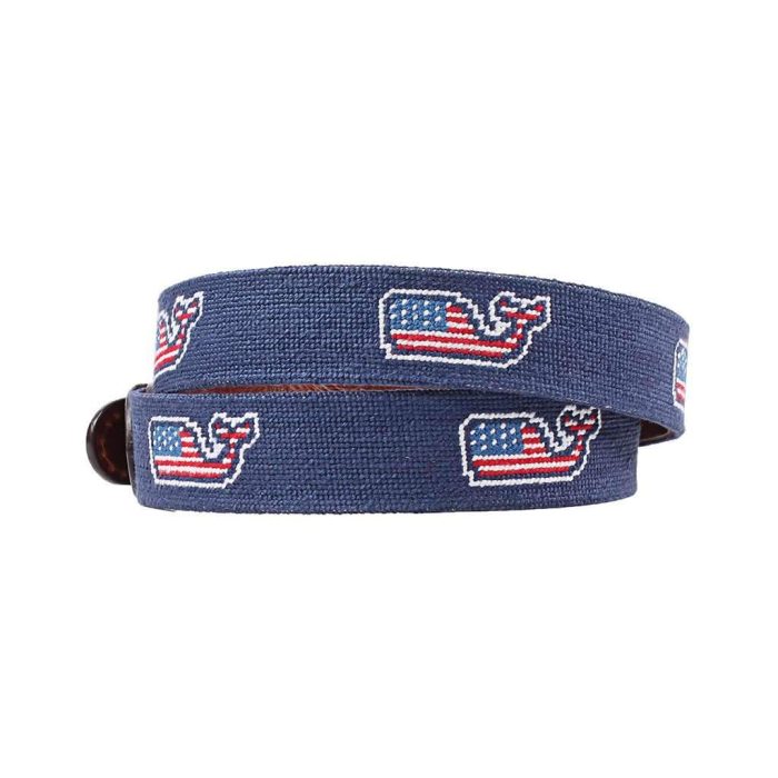 Vineyard Vines American Whale Needlepoint Belt in Navy by Smathers & Branson