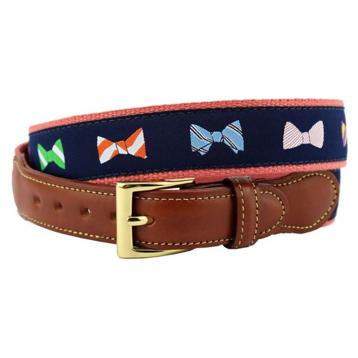 How Do You Tie Bow Ties Leather Tab Belt in Navy on Nantucket Red Canvas by Country Club Prep