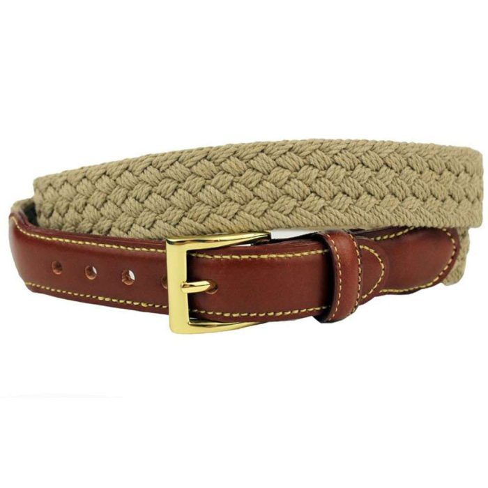 Loggins & Messina Woven Cotton Leather Tab Belt in Khaki by Country Club Prep