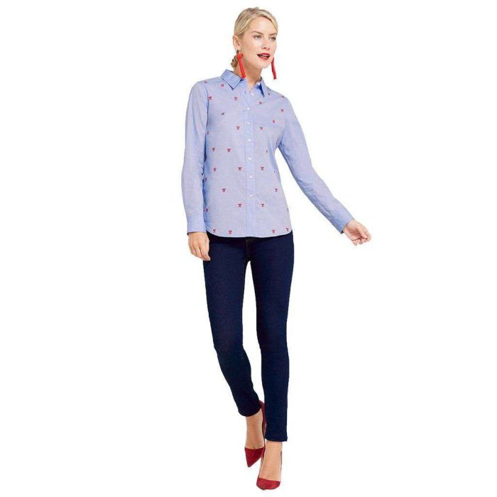 Custom magnolia embroidery above back right pocket100% cottonHollywood waistbandBelt loop with single needle topstitch center