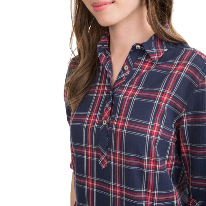 Alyssa Wintertime Spice Plaid Shirt Dress in Navy by Southern Tide