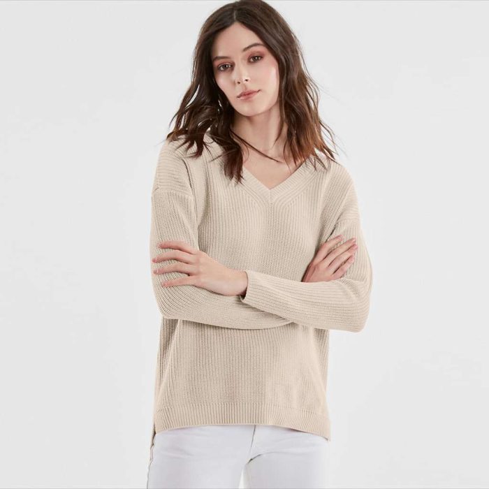 100% CottonOver-sized FitLong SleevesV-NeckLightweight Cotton Shaker KnitBenefitsAvailable in five colorsThe perfect fall and winter layering pieceTim
