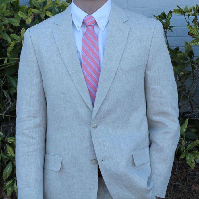Alderman Flat Front Pant Suit in Natural Tan Linen by Country Club Prep
