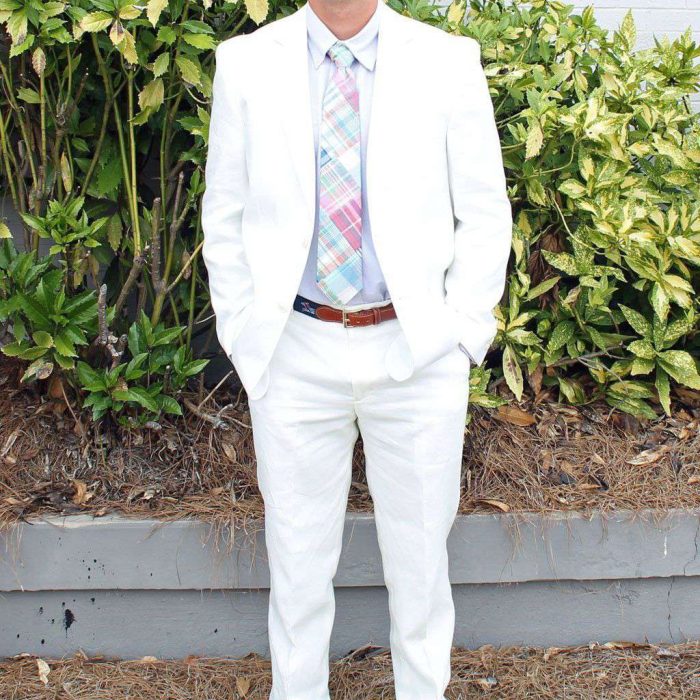 Alderman Flat Front Pant Suit in White Linen by Country Club Prep