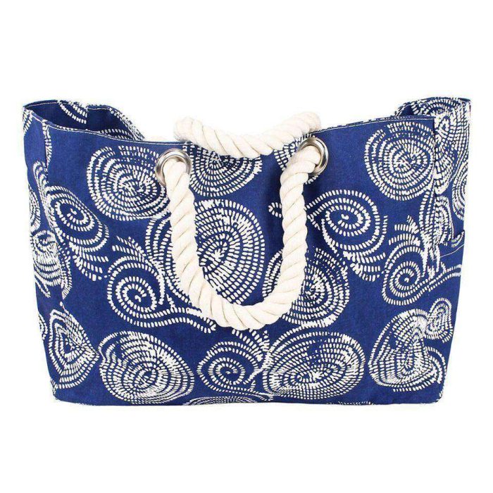 - Drawstring closure to keep out sand - Inside pocket for wallet and keys. - Double roped handles - Side handle - Canvas