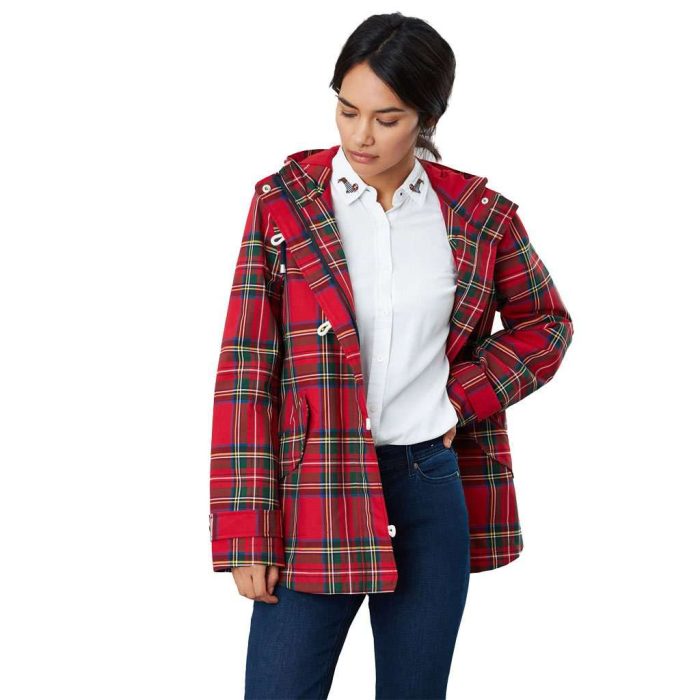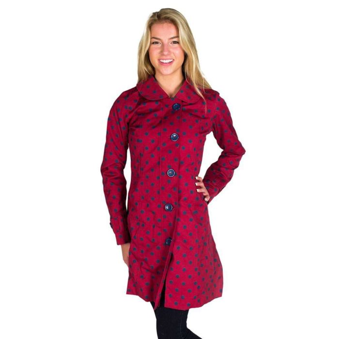 Printed Waterproof Cotton Canvas CoatBreathableMachine WashableHoodedNautical Cord Toggles From HoodFront Pockets With Concealed PoppersSleeve Cuff Wi