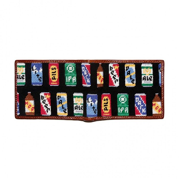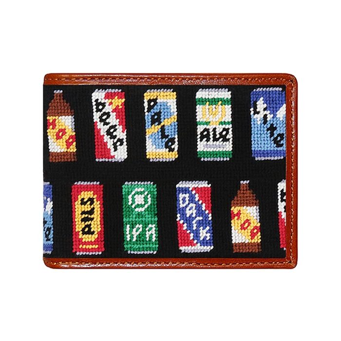 Beer Cans Needlepoint Bi-Fold Wallet in Black by Smathers & Branson