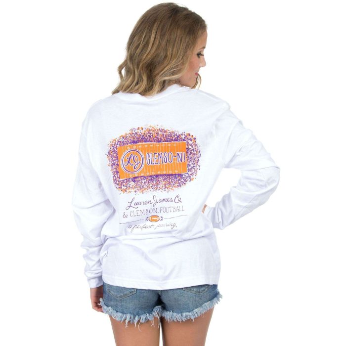 Clemson Perfect Pairing Long Sleeve Tee in White by Lauren James