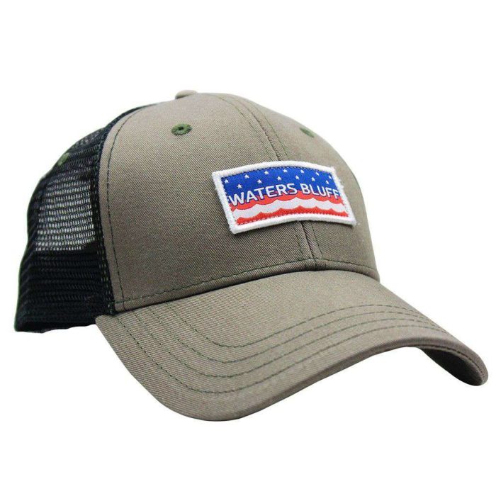 Stars & Waves Trucker Hat in Surplus Green & Black by Waters Bluff