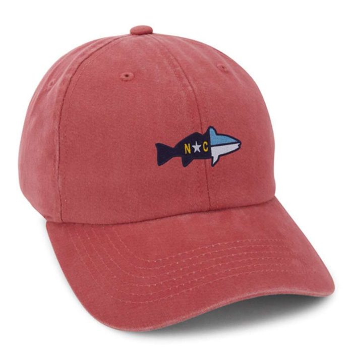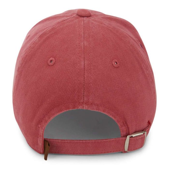 Pigment washed cotton twillUnstructured low-profile sweepGrey undervisorSelf-fabric adjustable backstrap with antiqued slider and red embroidered tuck