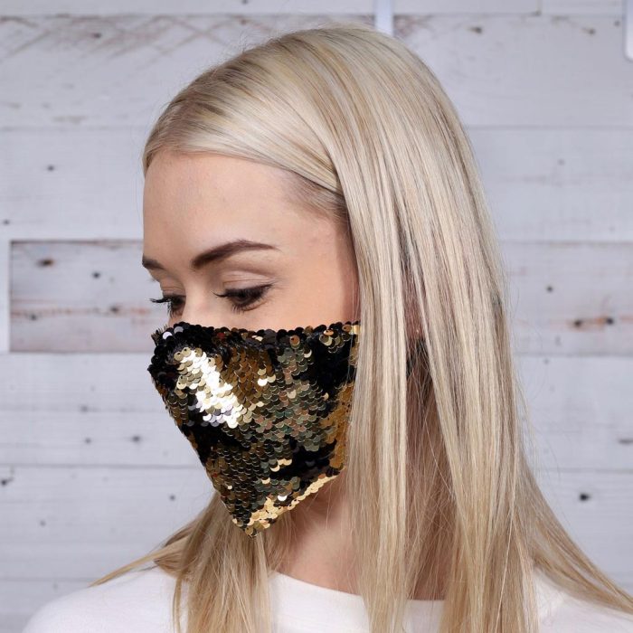 Details 100% Cotton Backing Reversible Sequined Star Pattern on Front Comfortable, elastic ear-loops Reusable & Washable Double Layer Made for dai