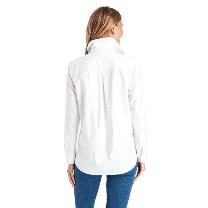 96% Cotton 4% SpandexTonal Longshanks Embroidery on Interior Bottom PlacketRelaxed Button DownFront Chest PocketCurved Hem with Slight High Low for Ad
