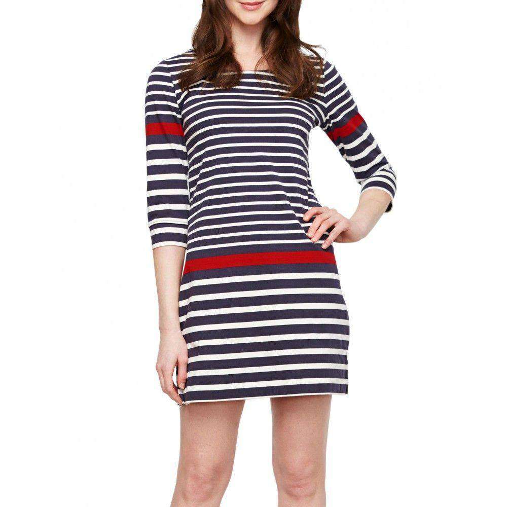 3/4 Sleeve Nautical Stripe Dress in Navy by Haltey