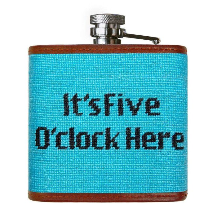 5 O’Clock Here Needlepoint Flask in Aqua by Smathers & Branson