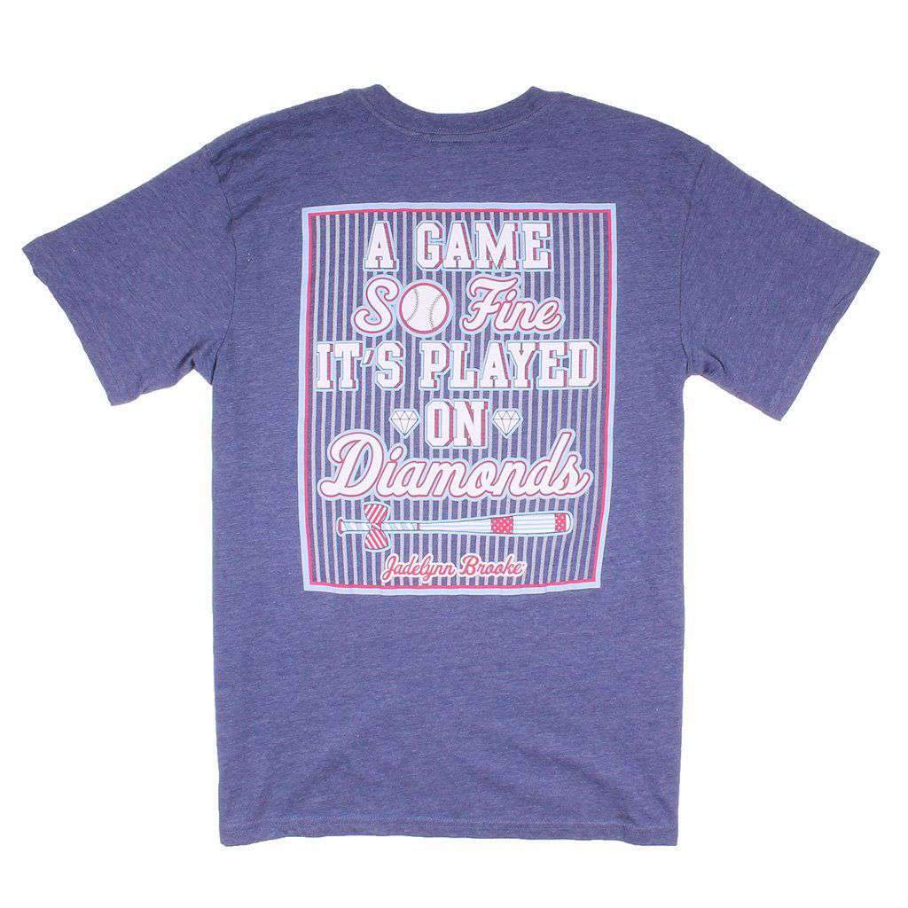 A Game So Fine it’s Played on Diamonds V-Neck Tee Shirt in Heather Navy by Jadelynn Brooke