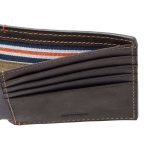 Full-grain leather exteriorEmbossed exterior logoSchool color exterior hand tack detailsSchool color webbing within the bill compartment5 credit card