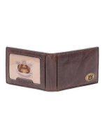 – Full grain leather construction – Contrast stitching – Vintage brass hardware pressed with school name and printed within the bill compartment – 8 card slots, 3 slip pockets, ID window, and a full size bill compartment
