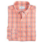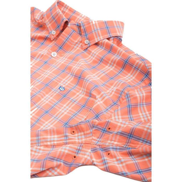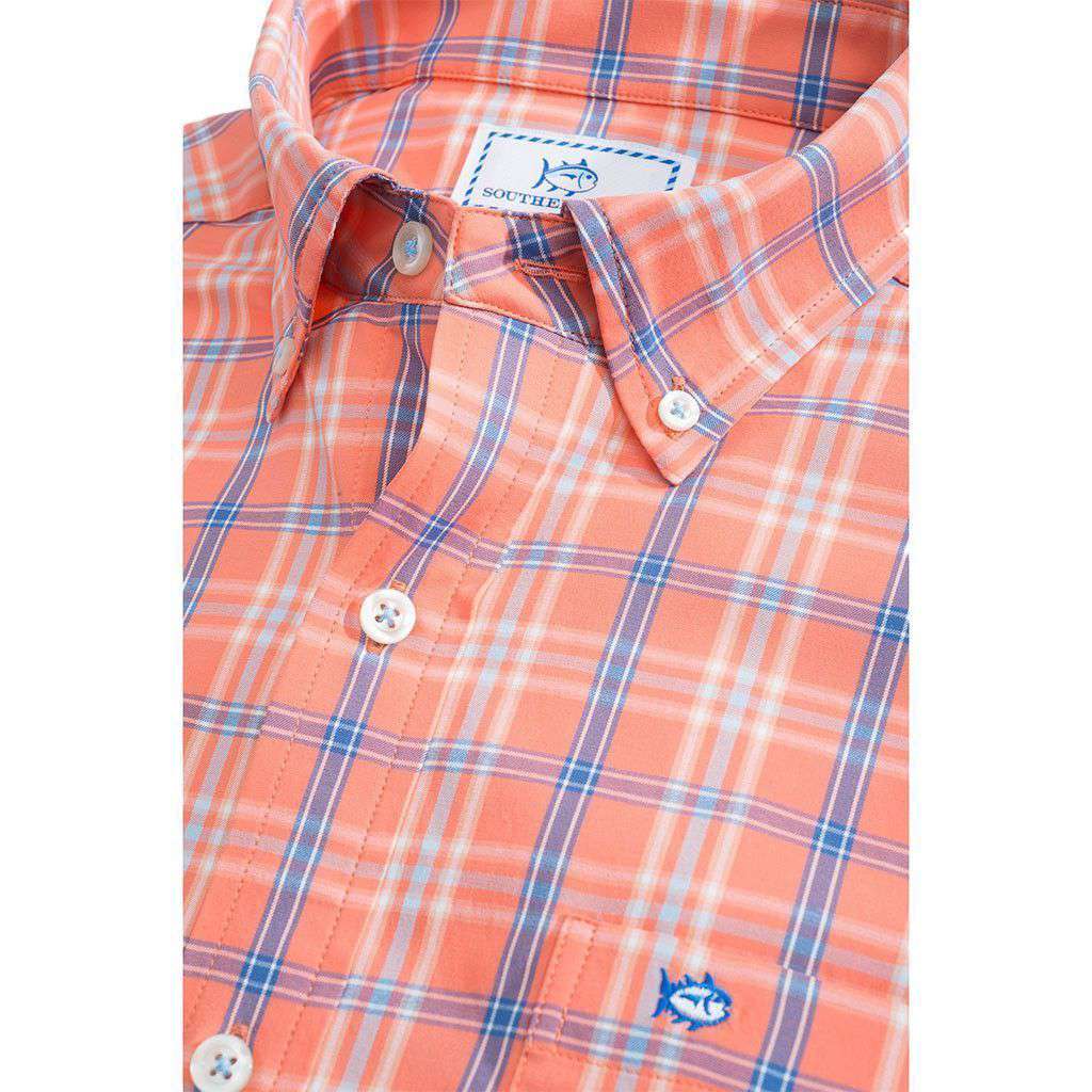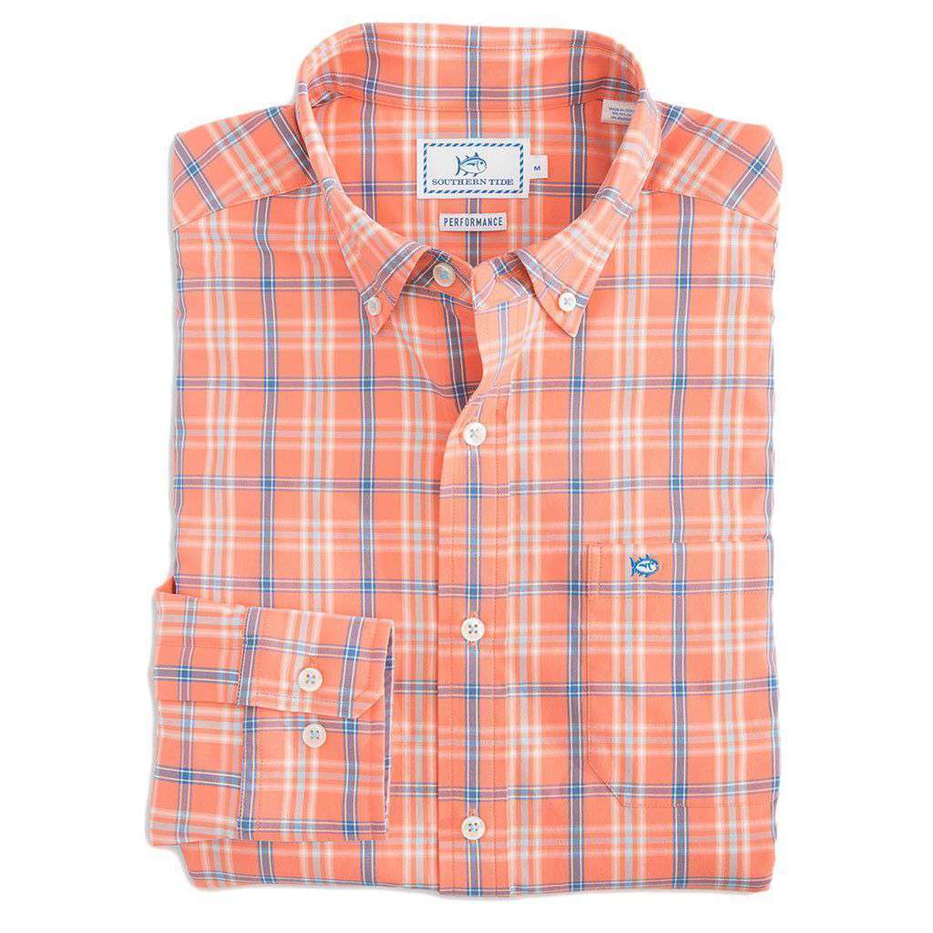 Barrier Key Plaid Intercoastal Performance Shirt in Peach Fizz by Southern Tide