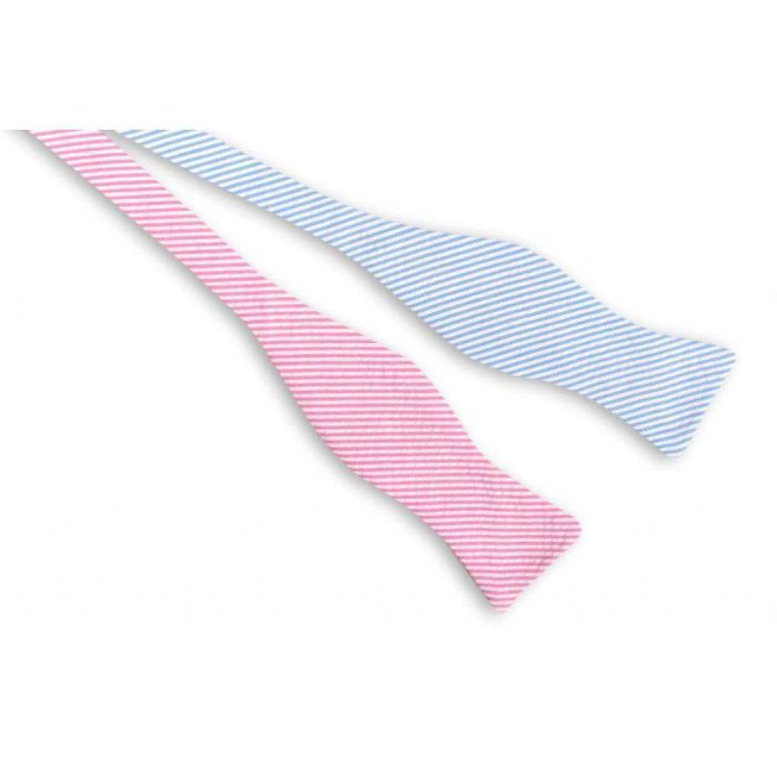 Boater Seersucker Four Way Bow Tie in Blue, Pink, Green and Orange Seersucker by High Cotton