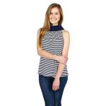 100% PonteNavy and White StripeCowl NeckGold Buttons