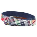 Cape Cod Madras Leather Tab Belt on Navy Canvas by Country Club Prep