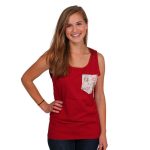 Chi Omega Tank Top in Barn Red with Pattern Pocket by the Frat Collection