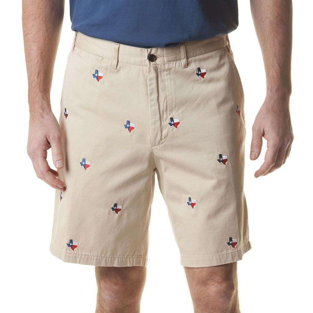Cisco Short in Tan with Embroidered Lonestar State by Castaway Clothing