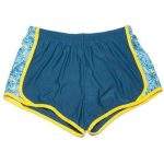 – An inner liner, which is easy to cut out if that’s not your thing.- An upside down label on the inside. (We know you’re probably going to roll them!)- A printed side stripe that bows out at the bottom.- A small pocket built into the lining for keys or a cell phone.- A comfortable waistband with drawstring.- Extremely comfortable material including 100% Polyester and a Nylon/Spandex blend.- Made in the U.S.A.All sizes are approximate, given drawstring and elastic waist.