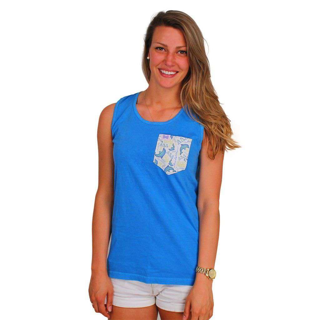 Delta Delta Delta Tank Top in Caribbean Blue with Pattern Pocket by the Frat Collection