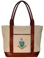 Heavy duty canvas toteFeatures the Tri Delt crest in hand-stitched needlepoint on the frontInternal pocketBenefitsZipper top closureFront External Poc