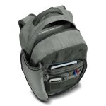 Front D-door compartment has internal organization with a fleece-lined media pocket, secure zippered pocket and elastic webbing for cord management